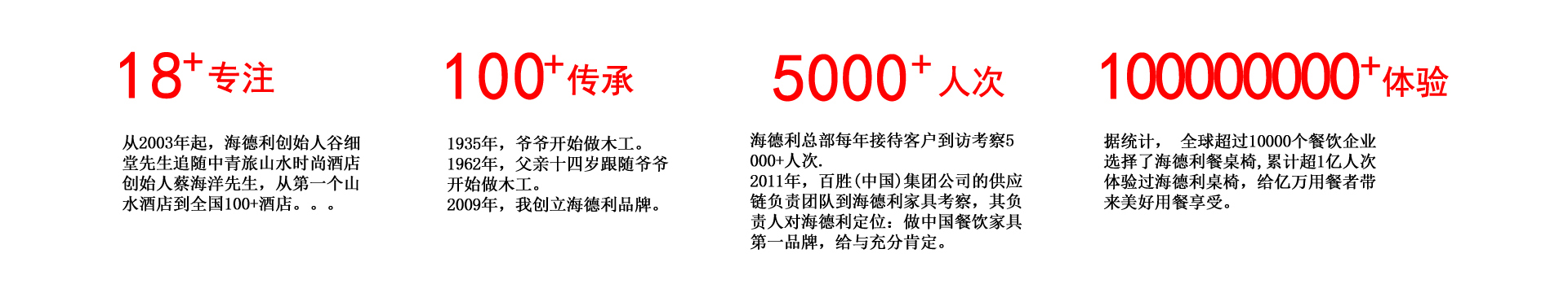 從歐美發(fā)達(dá)市場到東南亞乃至非洲等新興市場,超過100000個(gè)餐飲品牌及餐飲連鎖店,都在使用海德利家具,給您信心保證。